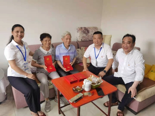 根据中共中央办公厅《关于做好“光荣在党50年”纪念章颁发工作的通知》精神,作为中国共产党成立100周年庆祝活动的重要组成部分,七一前夕,湘潭中环党委向公司符合条件的18名老党员颁发了“光荣在党50年”纪念章。 6月22日-24日,公司党委书记、董事长李晓尚一行前往公司离退休老党员家中走访慰问,将“光荣在党50年”纪念章送到18名老党员手中,把党的温暖传递到老党员心中。同时为他们带去了慰问信、《习近平论中国共产党历史》、《毛泽东、邓小平、江泽民、胡锦涛关于中国共产党历史论述摘编》等党史学习教育书籍以及电压力锅、养生壶等生活用品,详细询问了他们的身体状况和生活情况,向他们转达了组织的关怀,希望他们能一如既往地关心、支持湘潭中环各项工作,并通过他们对全司老党员、老职工表达敬意,鼓励广大老党员继续保持共产党人本色,继续发扬全心全意为人民服务的精神,为公司的发展建言献策、发挥余热。