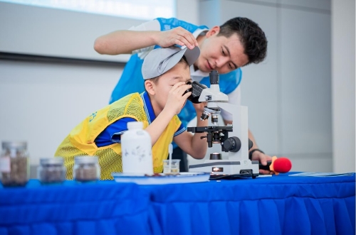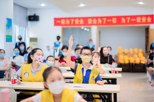 参观结束后,邹志起书记在深圳中环综合楼报告厅作题为《保护水环境 节约水资源》的报告,深入浅出地为大家讲述水污染分类、水污染现状、污水处理流程以及节水爱水常识。各位同学和家长听得津津有味,并现场参与了污水变清流过滤实验----自行拼接组装过滤装置后,将污水注入其中,在静置沉淀后观察污水由污变清的全过程,寓教于乐,回味无穷,让孩子们从小就树立起节约用水、保护环境的强烈意识。