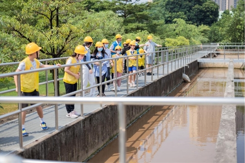 在深圳中环党支部书记邹志起带领下,同学和家长饶有兴致地参观了厂区水质净化各道工序----粗格栅、细格栅、初沉池、生化池、二沉池、磁混凝......大家认真观看、仔细听讲、实地感受,沉浸式体验了污水从浑浊不堪到晶莹剔透的净化全过程,纷纷感慨水质净化厂的神奇之处。