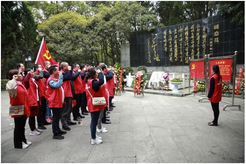 湘潭中环党委副书记、总经理袁程,党委副书记、纪委书记李春良,财务总监田树松,工会主席詹益民,党群纪检办和部分分会主席携工会全体积极分子参加活动。 上午,大家来到长沙板仓杨开慧故居、杨开慧纪念馆及烈士陵园参观学习。全体党员重温了《入党誓词》,庄严而坚定的宣誓声响彻烈士陵园,党员胸前佩戴的党徽熠熠生辉。
