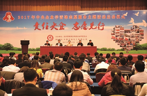 ? ? 3月2日,“责任央企 志愿先行”2017年中央企业学雷锋志愿服务主题活动启动仪式在中国石化集团总部举行。拉开了中央企业第54个学雷锋活动纪念日志愿服务活动的序幕。中央文明办、首都文明办、国务院国资委宣传局等部门的有关领导和中央企业有关负责同志及志愿者代表近300人出席了仪式。作为中国节能志愿服务者代表,新利体育平台首页登录应邀出席了此次活动。 ? ? 活动仪式上,国资委为荣获全国学雷锋志愿服务“四个100”先进典型的中央企业代表颁发了奖牌,4位获奖的先进集体和个人代表进行了经验交流发言。同时,发布了“责任央企 志愿先行”2017年中央企业学雷锋志愿服务主题活动方案。 ? ? 国资委宣传局副局长、文明办主任韩天表示,下一步,中央企业要以社会主义核心价值观为引领,进一步弘扬志愿服务精神,坚持深化认识、强化责任,坚持抓常抓长、落细落实,在志愿服务制度化、常态化、品牌化上下功夫,当好传承雷锋精神、推动志愿服务的“排头兵”,为推动中央企业全面深化改革、做强做优做大提供有力道德支撑。