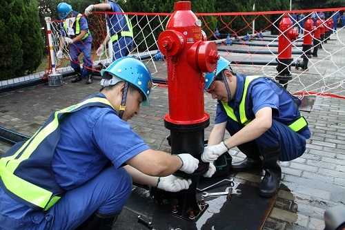 为提升企业紧急处置突发性供水事故的综合能力,激励一线员工岗位成才,7月28日,蚌埠中环举行了一场供水应急抢修演练和管道工技能竞赛活动。蚌埠市应急办、市人防办(地震局)、市总工会、住建委等相关领导及陪同人员现场观摩。活动由蚌埠中环工会主席齐中和主持,党委副书记/纪委书记傅益群致欢迎辞。 为保证此次活动圆满完成,蚌埠中环高度重视筹备和组织工作,专门成立了应急演练和技能竞赛领导小组。为充分展现供水应急处置能力和选手技能水平,领导小组前期拟定了应急演练流程,提前准备演练和竞赛场地及各项材料的装配工作,并配有专人负责比赛现场的水电等后勤保障服务。此次应急演练主要模拟我市突发地质灾害时,供水管道设施受到严重破坏,蚌埠中环抢修队采取有效措施及时应对的场景。演练科目主要有突发事件时应急抢险信息传递、应急止水、抢修、现场安全维护和抢修区域交通疏导等内容。 当天下午4时30分,演练正式开始。蚌埠中环供水服务热线接到“110”电话报警,位于纬四路上海栈附近一处消防栓因地质灾害受损,水柱喷射10余米高,漏水导致路面交通拥堵。随后供水热线立即交办管线所前去抢修;供水抢修车以及抢修指挥人员接到电话指令,率先赶到消防栓撞断现场,使用阀门启闭器关阀止水,并设置隔离设施,现场指挥及时向应急中心汇报现场情况,安全员指挥疏导交通。止水后,抢修队员立即携带工具材料赶赴现场进行安全维护,同时开展抢修作业,在最短时间内更换了受损消防栓。 参加应急演练的抢修队员精神抖擞,他们严格按照实战要求,佩戴整齐的安全防护装备,动作迅速标准到位,步骤有条不紊,相互配合默契,展现了蚌埠中环抢修人员在应对突发事件时高效有序的应急处置能力和团结协作的精神风采。此次应急抢险演练受到了市应急办主任王祥森的高度评价。 应急演练结束,举行了管道工技能竞赛,鲲鹏公司、政通公司、管线管理所、工程一处、工程二处、诚信公司、二供中心等7家单位的14名选手参加了竞赛。 随着裁判长的口令,参赛选手立即开始操作。赛场上,选手们沉着冷静,以饱满的热情和娴熟的技艺投入比赛,司属各部门100余名职工到场为选手加油鼓劲。大赛现场纪律严明,竞赛紧张有序。最后,管线管理所获得第一名,二供中心获得第二名,政通公司获第三名,其余参赛队伍均获得优胜奖。