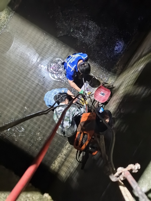 此时,时间已至凌晨1点,在排空阀门井内污水,做好安全措施后,焊工迅速就位开始补焊。历经7个小时的连续奋战,4月26日7时,管道封板破损处顺利完成焊接,通水试机确保焊接处滴水不漏后,于4月26日7时30分转入正常运行。全员有序、高效的应急响应,保障了这场和时间赛跑的“抢修战”的胜利。